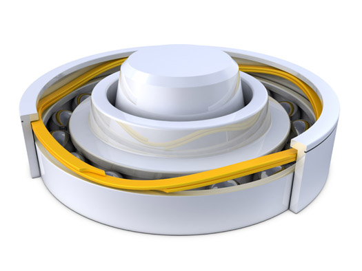 Der einheitliche Querschnitt der Spirolox® Sicherungsringe erlaubt einen Einbau in der Baugruppe, ohne die Gegenstücke in der Baugruppe zu behindern. Der Ring leitet die auf die gesamte Baugruppe einwirkende Kraft über den Lagerkäfig an die Wellenfeder weiter. Dadurch erhält die Drehdurchführung mehr Flexibilität und Stabilität.